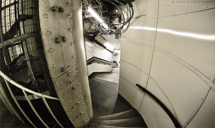Zachytiť to však nie je ľahké. Všetko je stiesnené a je potrebná veľmi široká šošovka. Kvôli veľmi širokej perspektíve je zaujímavá kompozícia skoro nemožná. Málo svetla - hrozí rozmazaný snímok a šum. Stále tam chodia ľudia a sníma Vás kamera - aby som nepôsobil podozrivo musel som to odfotiť za pár sekúnd...