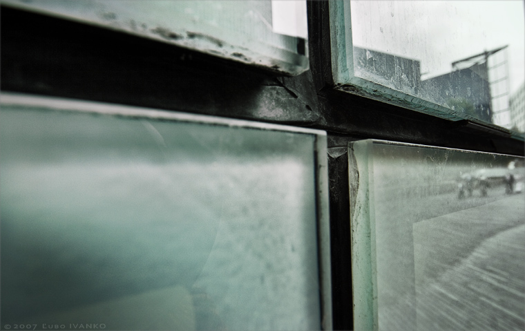 Potom - v počítači som našiel aj ďalšie odrazy na skle, drobné detaily, budovy, ľudí... Keď som to fotil nič z toho som nevidel. Chcel som len tie tvary - čisté línie, ale takto - keď to má všetky tie nedostatky a celý svet v skle sa mi to páči asi ešte viac...
