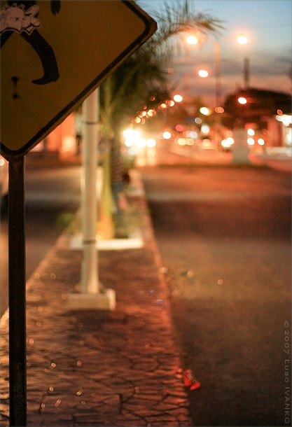 Nočné ulice Progresa. Tá šošovka 50/1.8 má v sebe čosi čarovné, lebo stále sa mi zdá, že aj také obyčajné cvaky sú s ňou nejak zaujímavejšie. Jednoducho - dajú sa s ňou vidieť veci, ktoré oko normálne nevidí. Občas na to myslím, keď cestujem nočným autobusom a nemám okuliare, svetlá áut sa zlievajú do kaleidoskopu farieb, ale aj tak - s tou šošovkou je to ešte čarovnejšie...