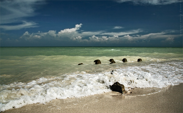 Hmm - ale farby som predsa nemenil. Nedalo mi a našiel som si niečo na tú tému na internete. Morská voda má naozaj rôzne farby. Samotná voda je väčšinou číra a modrú spôsobuje najmä odraz oblohy ale - nielen to. Je to aj tým čo voda obsahuje. Zelená voda na tejto fotografii je úplne v poriadku.