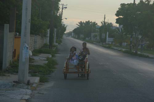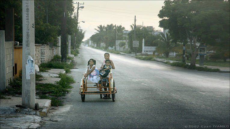 Rikše sú v tejto časti Mexika pomerne populárne. Lacnejšie ako auto (netreba benzín) a pohodlnejšie ako bicykel, keď treba zaviezť deti ráno do školy.