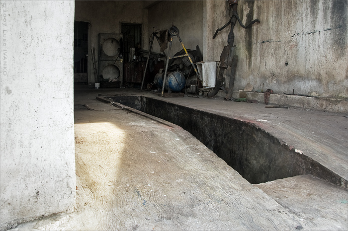 Táto fotografia je príliš obyčajná. Cvak. Ale keby som vedel maľovať a bol by to obraz - bol by to ten typ umenia čo mám rád! Autodielňa. Napravo by som dal možno muža v monterkách s cigaretou - pozeral by von z foto - proti kompozícii. Celé by to bolo v štýle Edwarda Hoppera...