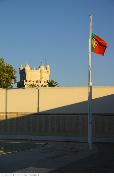 Monument padlým bojovníkom, neďaleko Belému. V pozadí Belémska veža.