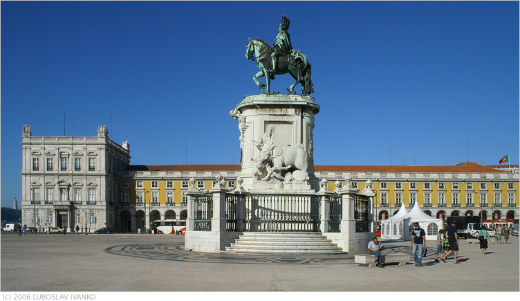 Známe Lisabonské námestie. Na soche je kráľ; José I. ktorý symbolicky drtí na koni hady na zemi...