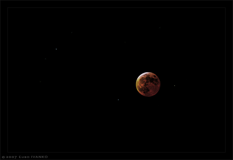 Aj pri úplnom zatmení Mesiaca sa často stáva, že Mesiac nie je celkom neviditeľný, ale je čiastočne osvetlený svetlom, ktoré sa láme v zemskej atmosfére. Svetlo je po prechode atmosférou Zeme v dôsledku rozptylu ochudobnené o modrú zložku a dodáva Mesiacu červenú až tmavočervenú farbu.