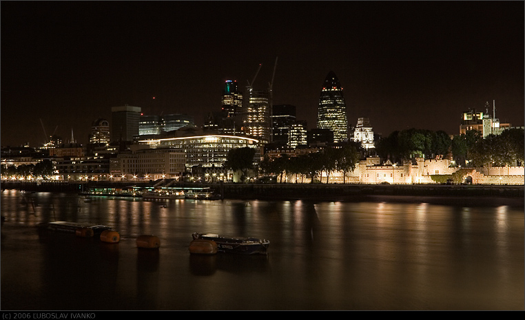 Budovy na obrázku sú najväčšie banky a finančné inštitúcie, ktoré sú koncentrované práve v tejto časti Londýna na severnom brehu Temže. Celý týždeň je toto jedna z najrušnejších oblastí Londýna - naopak cez víkend je tu ľudoprázdno, kedže všetky banky sú zatvorené.