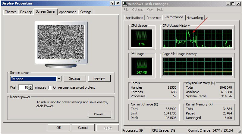Na pozadí hrá hudba, možno sa mi čosi "ťahá" z internetu, možno ja sťahujem nejaké dáta zo servera. A ak je môj server pár rokov starý stroj, tak naozaj nepotrebujem aby mi šetrič obrazovky spotrebovával výkon procesora. Pamätám si ako ešte v roku 1995 existovali v MS Dose 32kB "demá" kde sa nádherne menili farby, kreslilo to fraktály, rôzne 3D efekty. To bolo pred 15 rokmi. Nech mi nik netvrdí že nenájdem za pár minút úplne jednoduchý šetrič čo zobrazuje čiernobiely šum a vyžaduje menej ako 1% výkonu súčasného procesora!