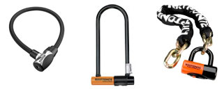 Najhoršiu povesť majú káblové zámky (vľavo), najbezpečnejšie sú D resp. U zámky a masívne reťaze.