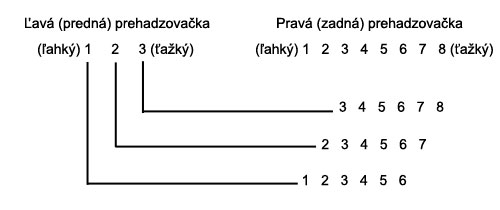 Naopak, ak je na ľavej (prednej) prehadzovačke najťažší prevod (3), tak aj na pravej (zadnej) sa snažím používať iba ťažké prevody (3 až 8)