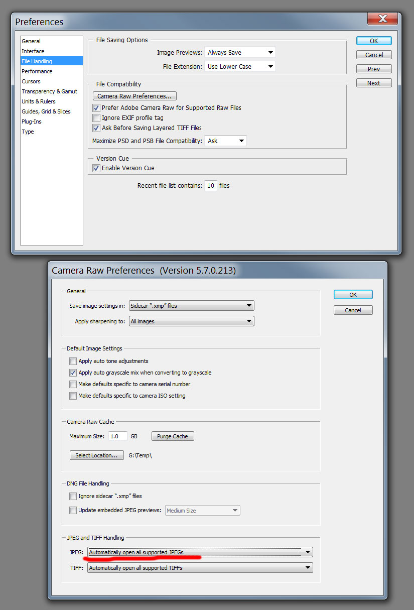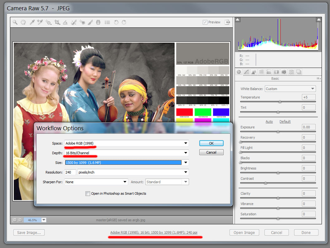 Kontrolovať, či mám stále vybraté Adobe RGB a 16 bitov, je celkom otrava (resp. problém, ak na to zabudnem...), a preto doporučujem používať Adobe Camera Raw (má to aj mnoho ďalších výhod) aj pre JPG súbory.