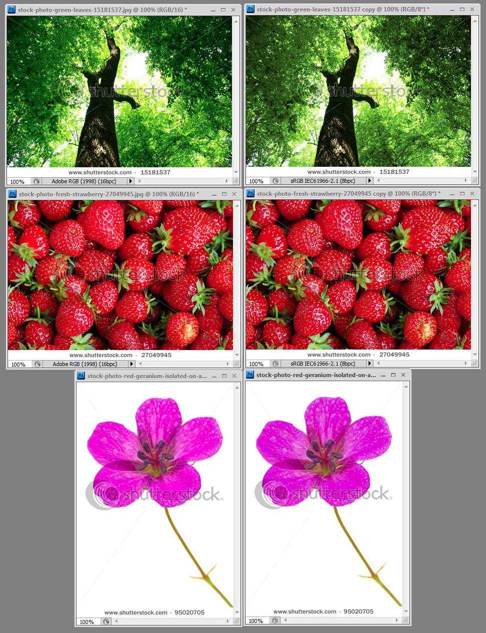 Každá konverzácia medzi profilmi znamená istú stratu kvality. Ak konvertujem Adobe RGB do sRGB (ale aj naopak), tak dôjde k malej strate kvality (zaokrúhľovanie) – nebude to okom badateľné. Ak však takýchto konverzií spravím za sebou viac, a ak ešte aj pracujem v 8 bitoch – môže to už spôsobiť problém. Preto doporučujem – nekonvertovať. Nemeniť počet bitov na kanál. Celý čas pracovať v 16 bit, Adobe RGB a až úplne na konci, predtým ako uložím obrázok, spraviť konverziu do 8 bit sRGB. Raz a dosť. Ak mám pocit, že by som v budúcnosti mohol obrázok ešte upravovať, uložím si aj verziu (pred konverziou do 8 bit sRGB) v 16 bit Adobe RGB.
